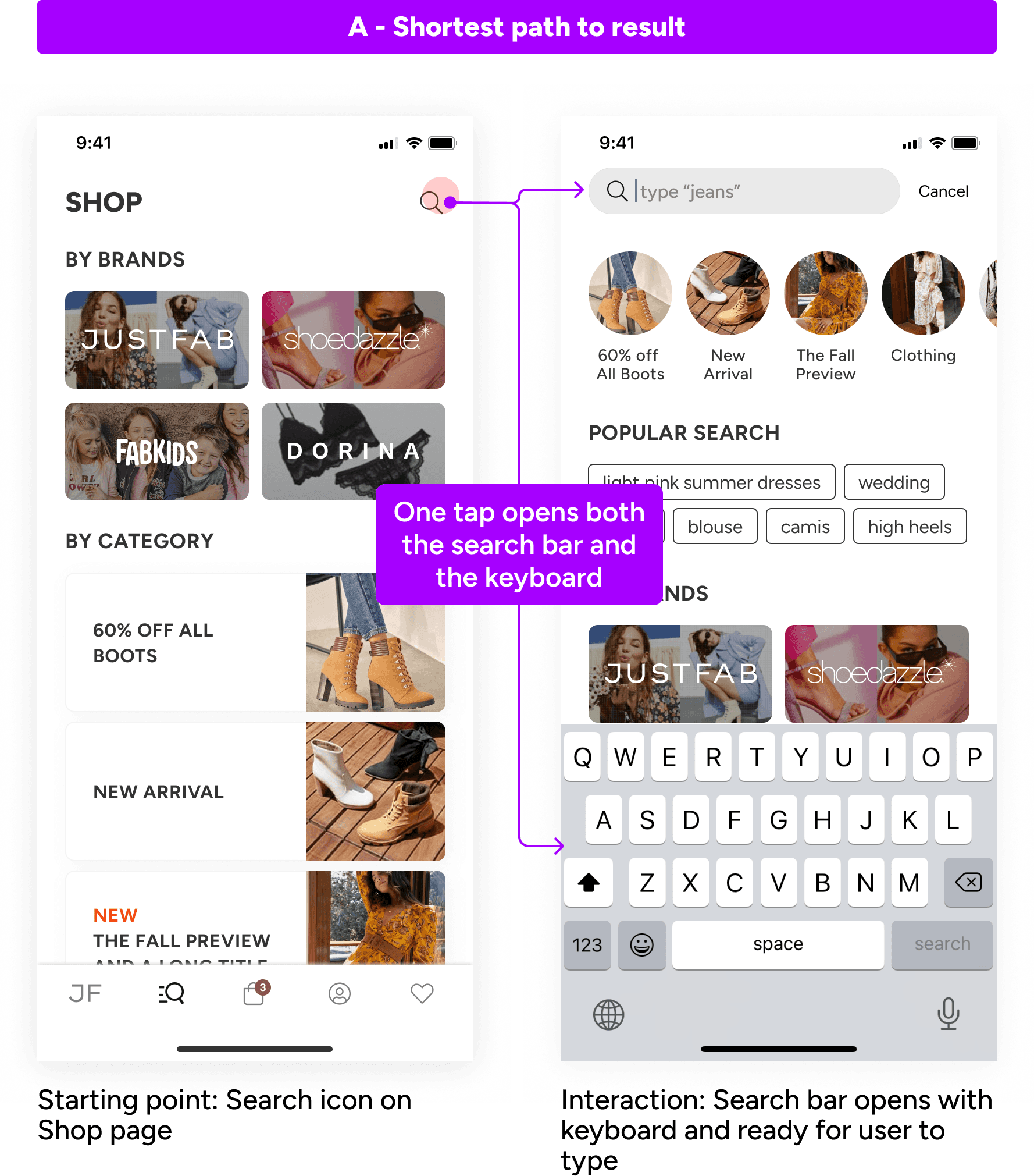 For users who rely on keyword search, I prioritized a flow that minimized effort and got them to results as quickly as possible.