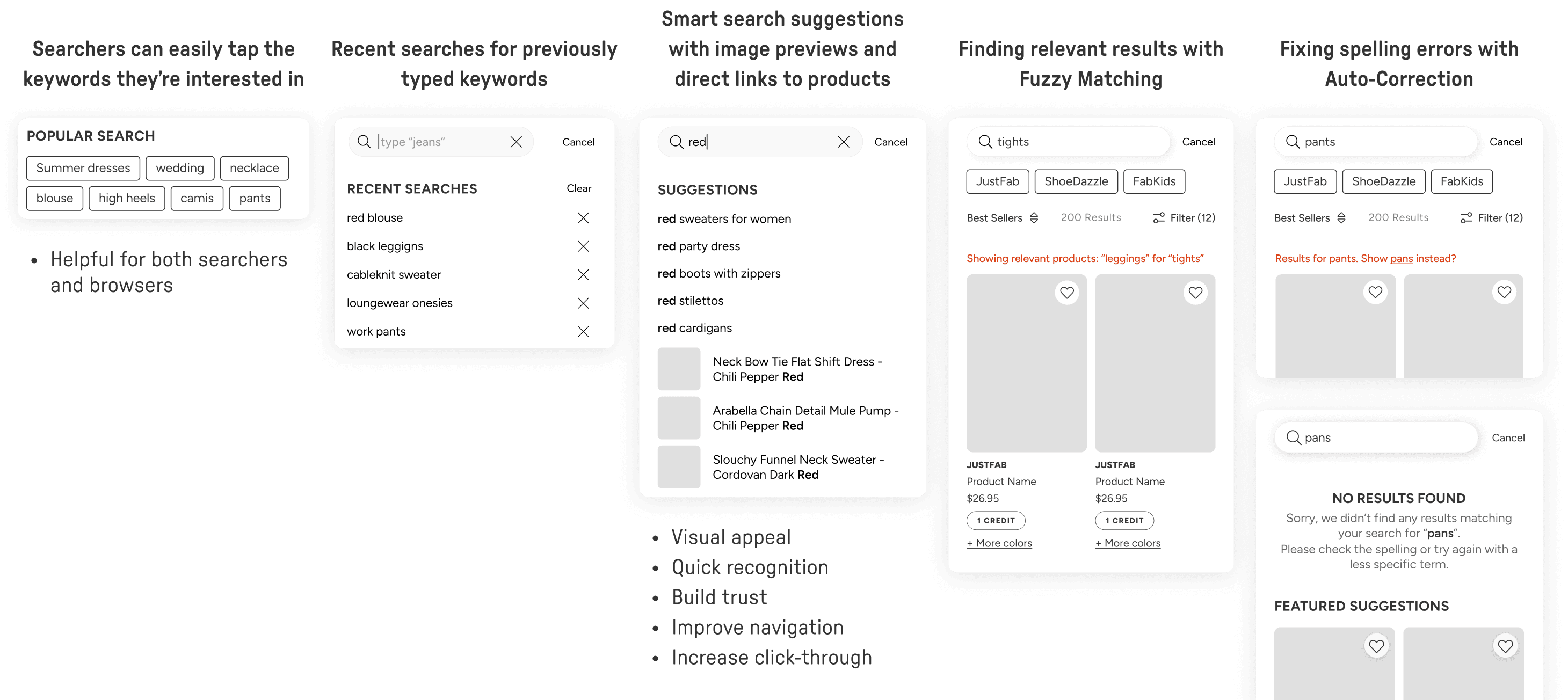 Search users have different intents. Some want speed, while others need support to explore. This project taught me to design for both through research and testing.