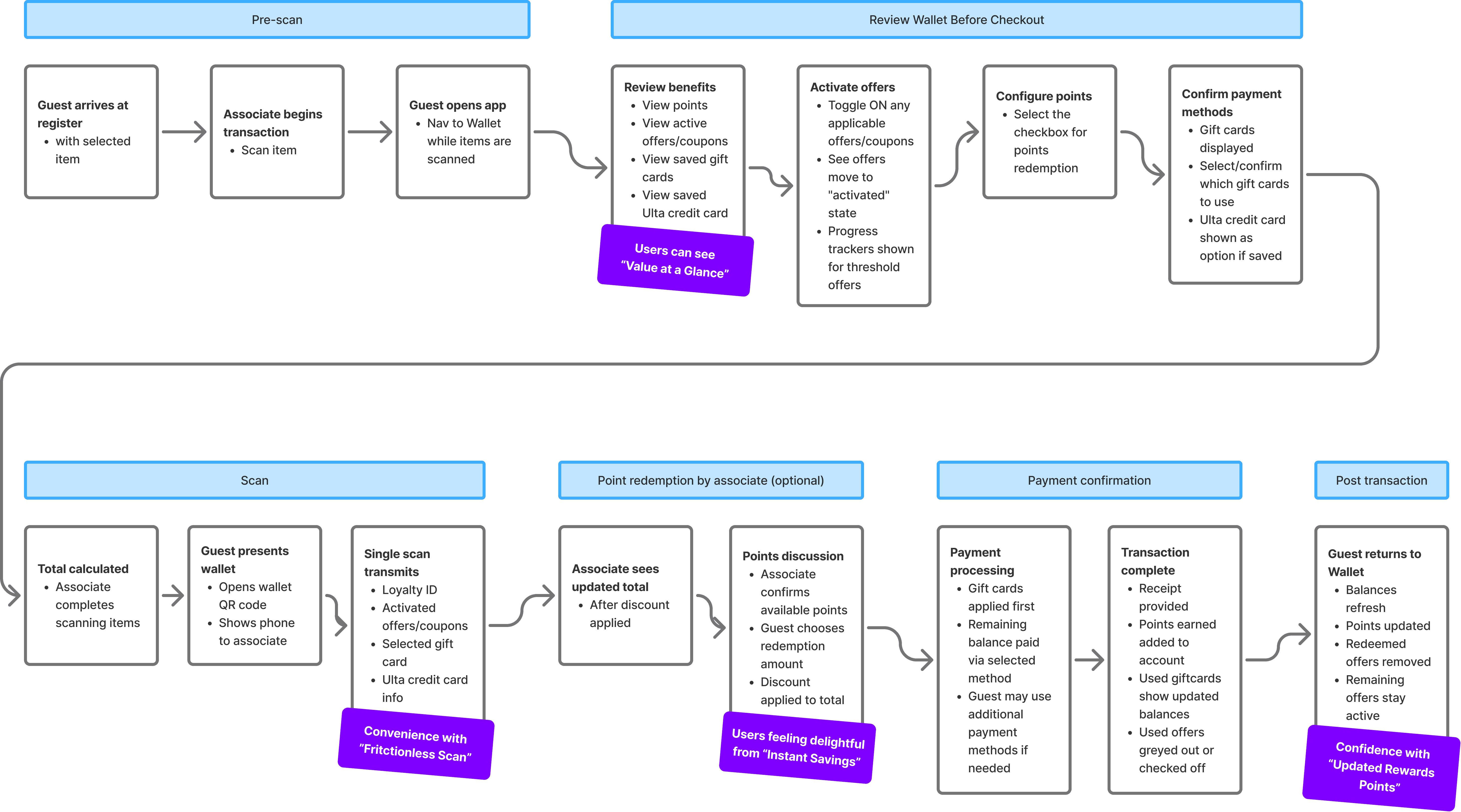 As a net new feature, Wallet required close collaboration with Store Ops, Payments, and POS teams. I learned that a deep understanding of the in store flow is essential to creating a smooth checkout experience for customers.