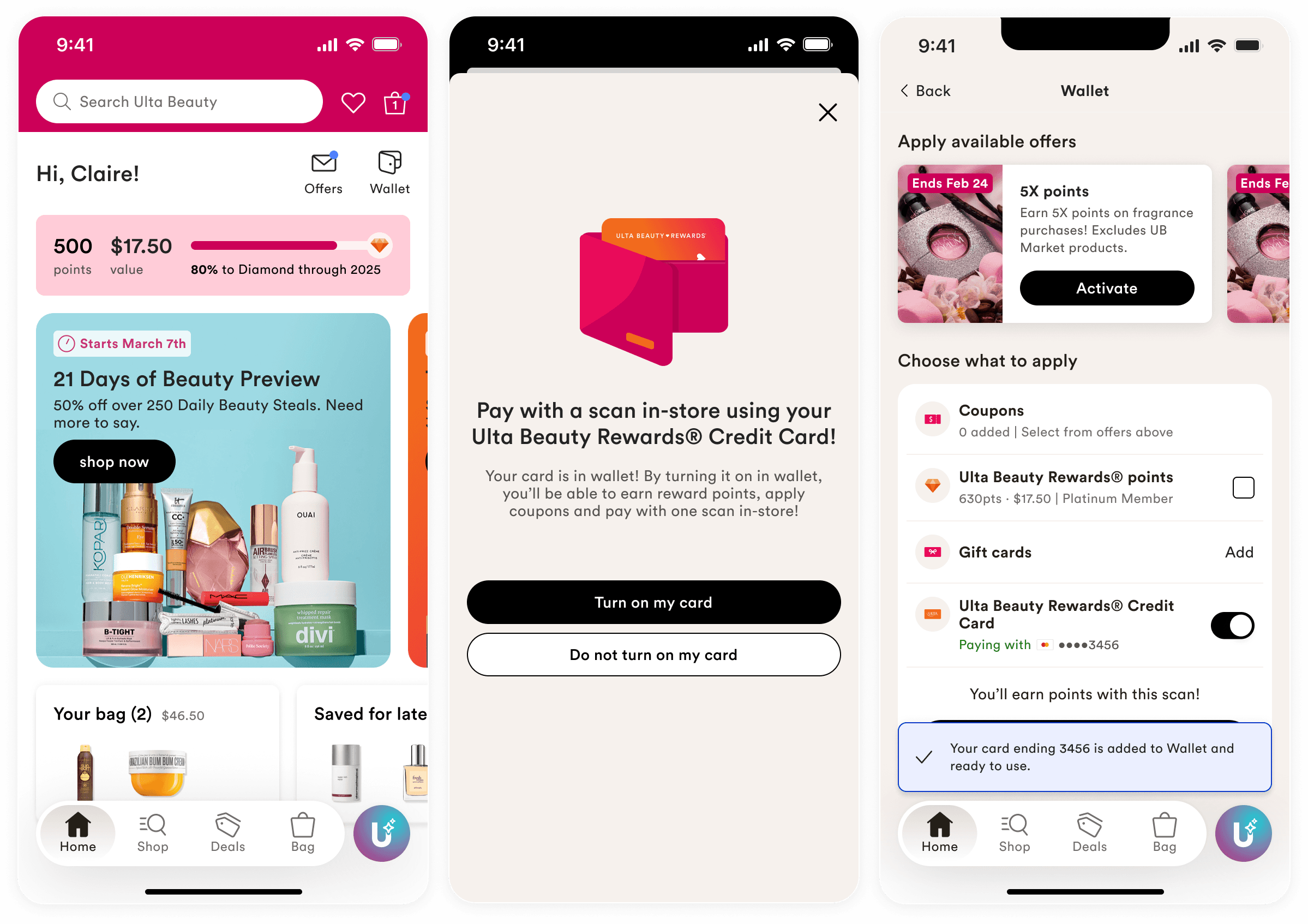 Consumer interest in the Ulta wallet is driven more by exclusive loyalty benefits, such as redeeming rewards points and accessing targeted offers, rather than storing credit or debit cards.