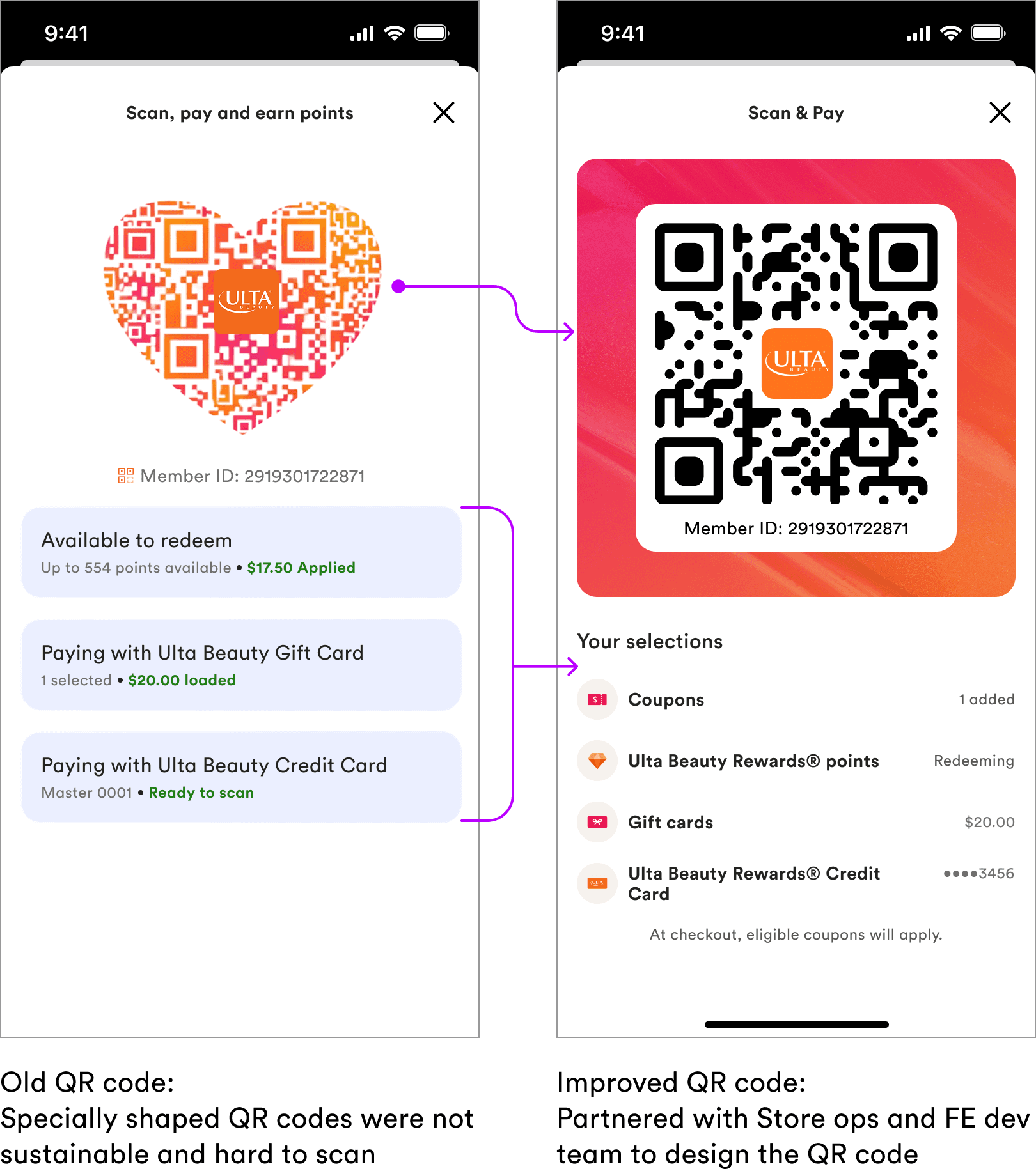 To address this, the next iteration focused on strengthening the relationship between wallet preparation (offers and payment selection) and the QR code interaction, so that users understood that scanning the code would transmit their rewards, discounts, and payment preferences in a single step.